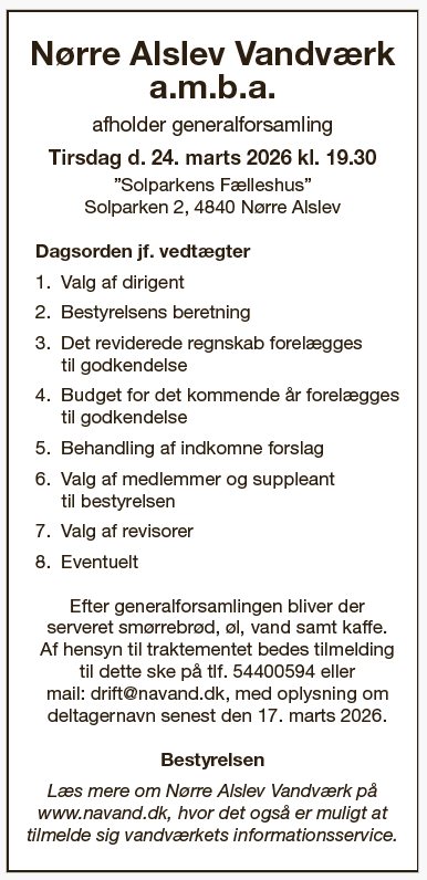 Velkommen til Nørre Alslev Vandværk